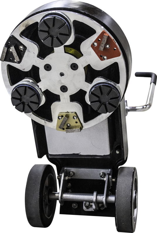 Máy này có thể gắn 3 đến 6 công cụ mài. Nó có thể xử lý các ứng dụng mài ướt hoặc khô và có thể mài phần sàn có khoảng cách 1/4 inch tính từ tường.